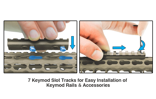 • First in the Industry - 112 Keymod Compatible Slots on 7 Keymod Slot Tracks for Mounting Keymod Compatible Rails and Accessories at any Angle and Postion with the Most Flexibility for Diverse Applications