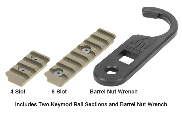 • Includes 2 Keymod Compatible Picatinny Rail Sections, 4 Slots and 8 Slots Each, for Limitless Accessory Customization Options